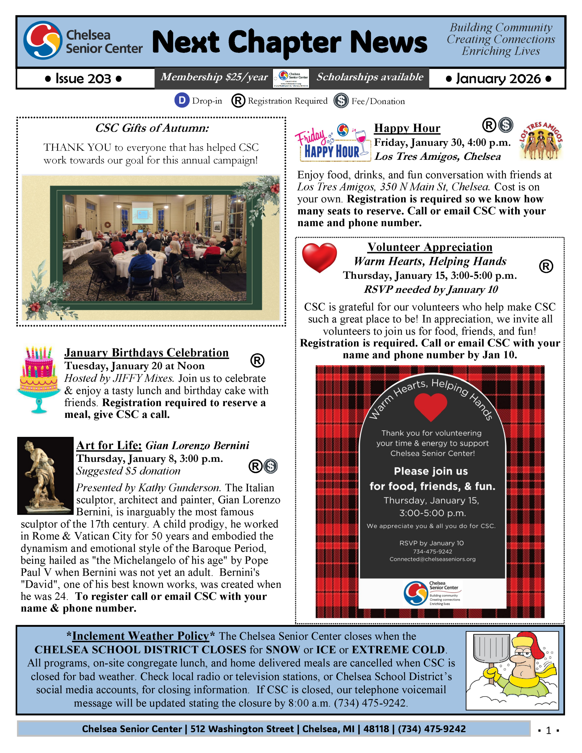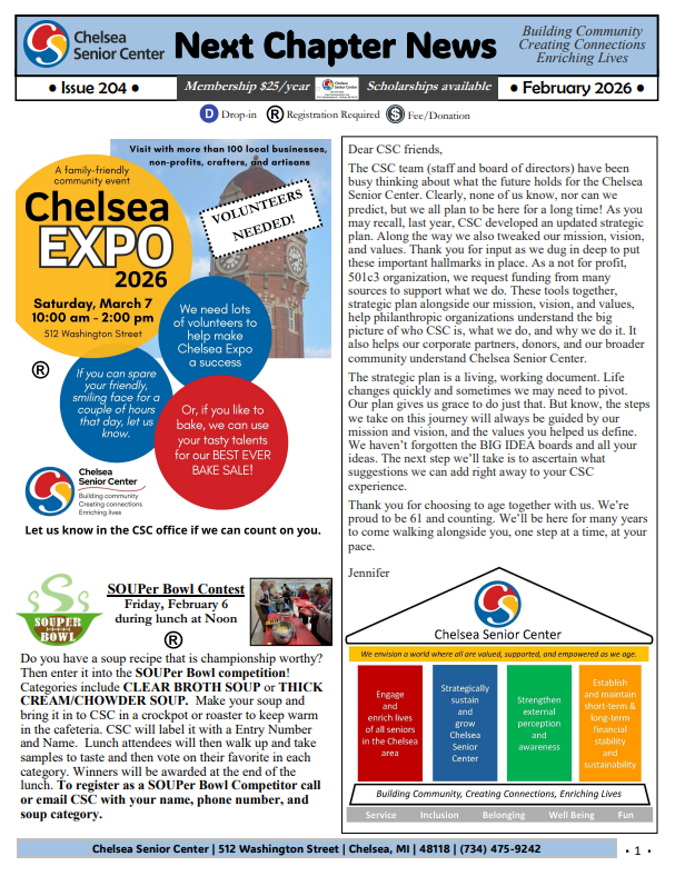 Funding for all CSC programs comes significantly from local support, including sponsorships and private giving, as well as from grants. Every dollar impacts seniors in our community every day.